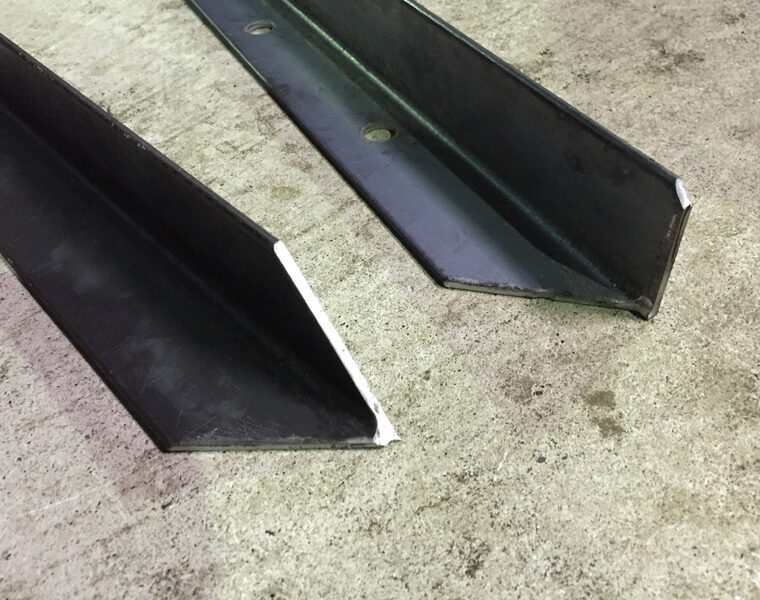 アングルの端をカットすることで、溶接する際に突合せしやすく(組みやすく)したり、杭に利用するための鋼材加工です。